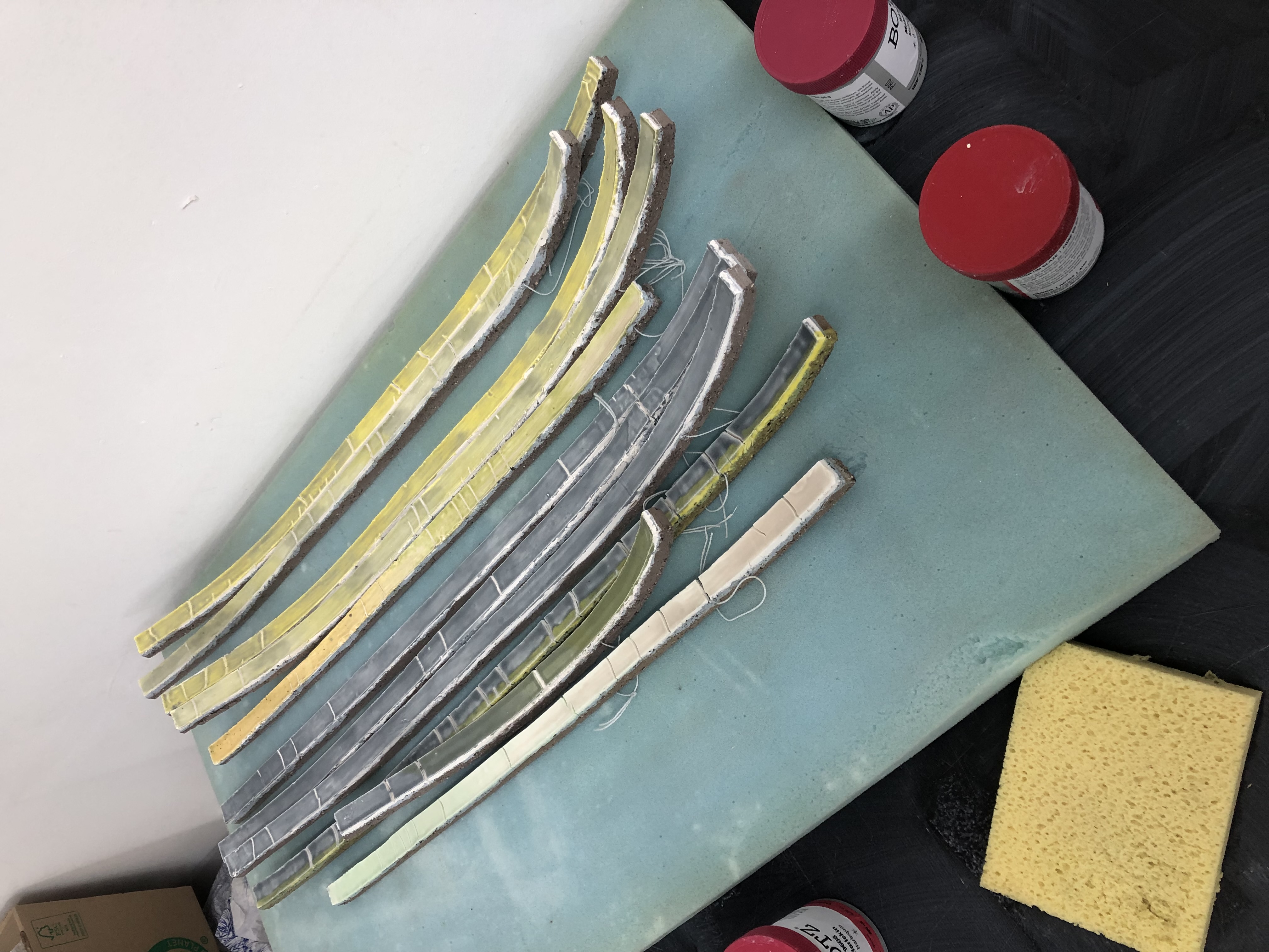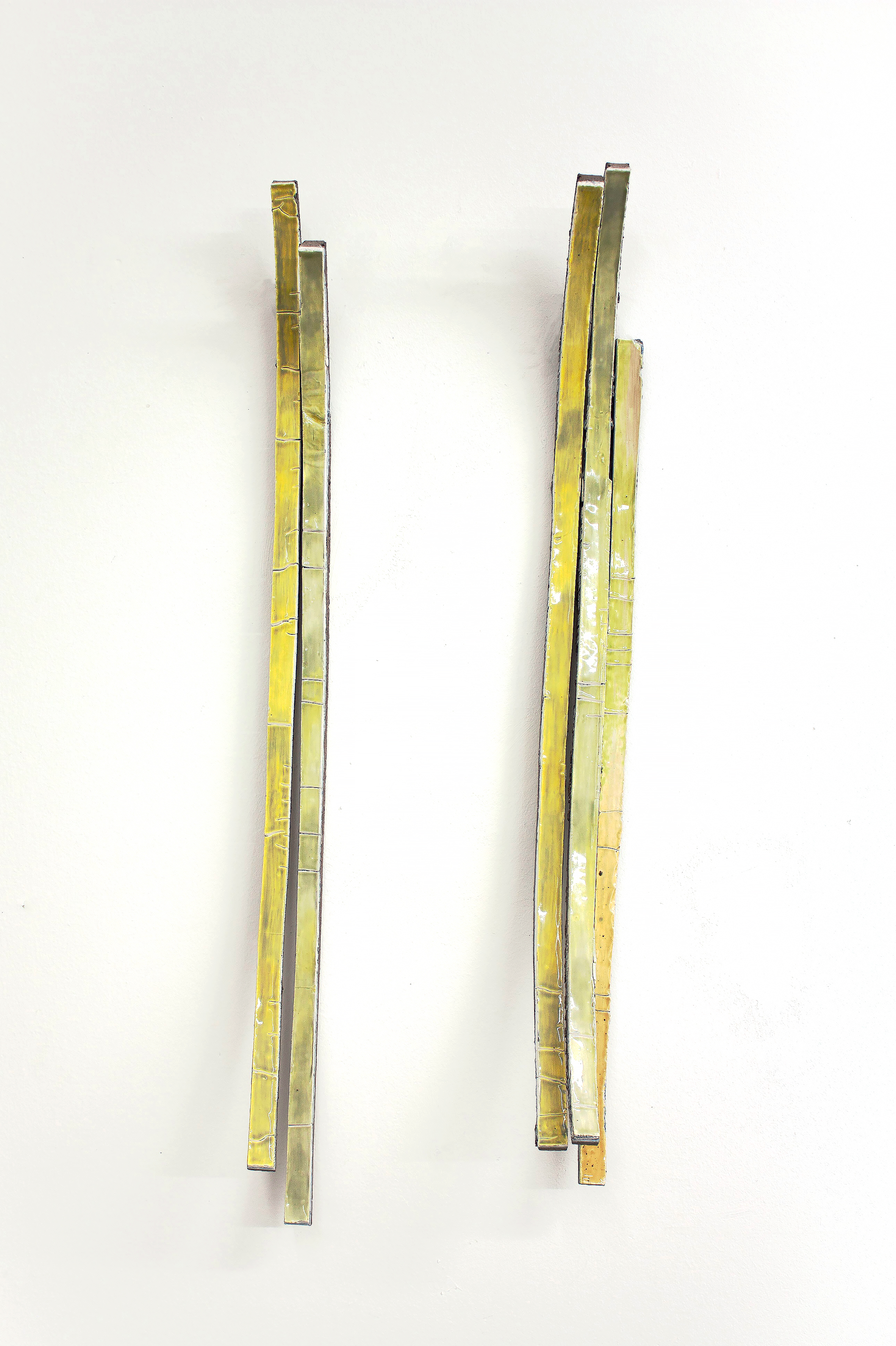 Indem ich gezielt Reaktionen des Materials provoziere und dem Zufall Raum einräume, entstehen Brüche, Fragmente und Verschiebungen, aus denen sich individuelle Formate entwickeln. Diese Fragmente arrangiere und kombiniere ich neu, um Beziehungen, Spannungen und Zwischenräume sichtbar zu machen. Meine Werkgruppen sind nicht abgeschlossen, sondern bauen aufeinander auf. Bestehende Ergebnisse werden wieder aufgenommen, überprüft und in neue Kombinationen überführt.